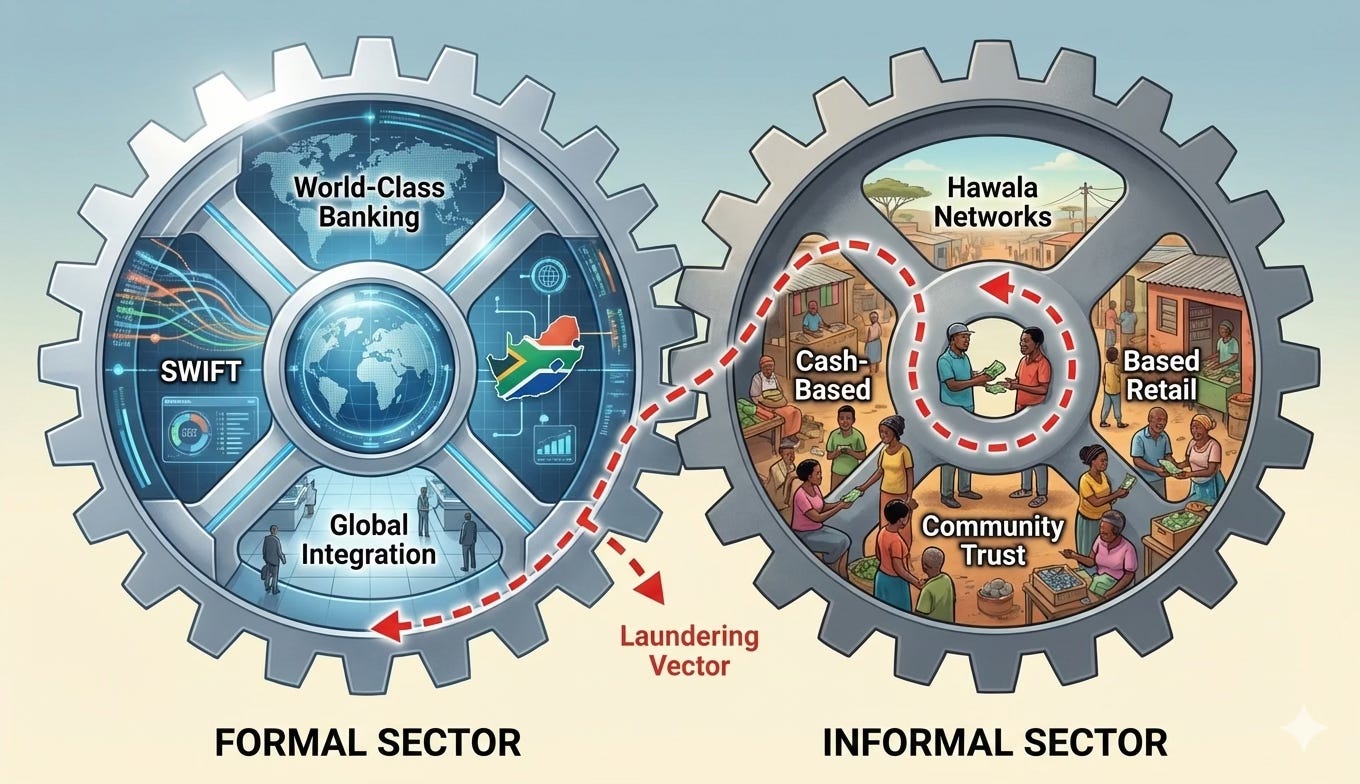 South Africa possesses, simultaneously, one of Africa’s most advanced banking sectors and one of its largest informal economies. For insurgent financiers, this is the entire point.