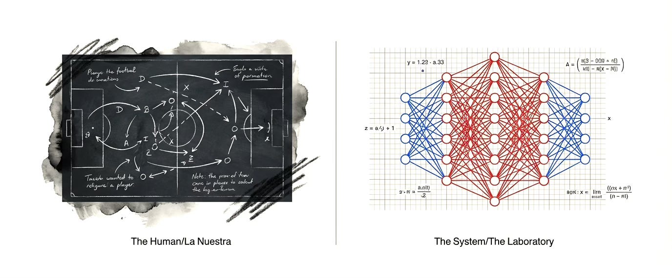 This is not an argument against the technology. It is an argument that generative AI makes design strategy more essential, not less. Because if machines can now execute the tactical repetitions with perfect efficiency, the question of which tactics to deploy, what we are optimizing for, and why certain outcomes matter over others becomes the entire game. The laboratory can now run itself. But laboratories, as Zubeldía demonstrated, optimize for what they are told to optimize for. They cannot question whether winning matches is worth the moral compromise. They cannot recognize when technical success has become cultural failure.